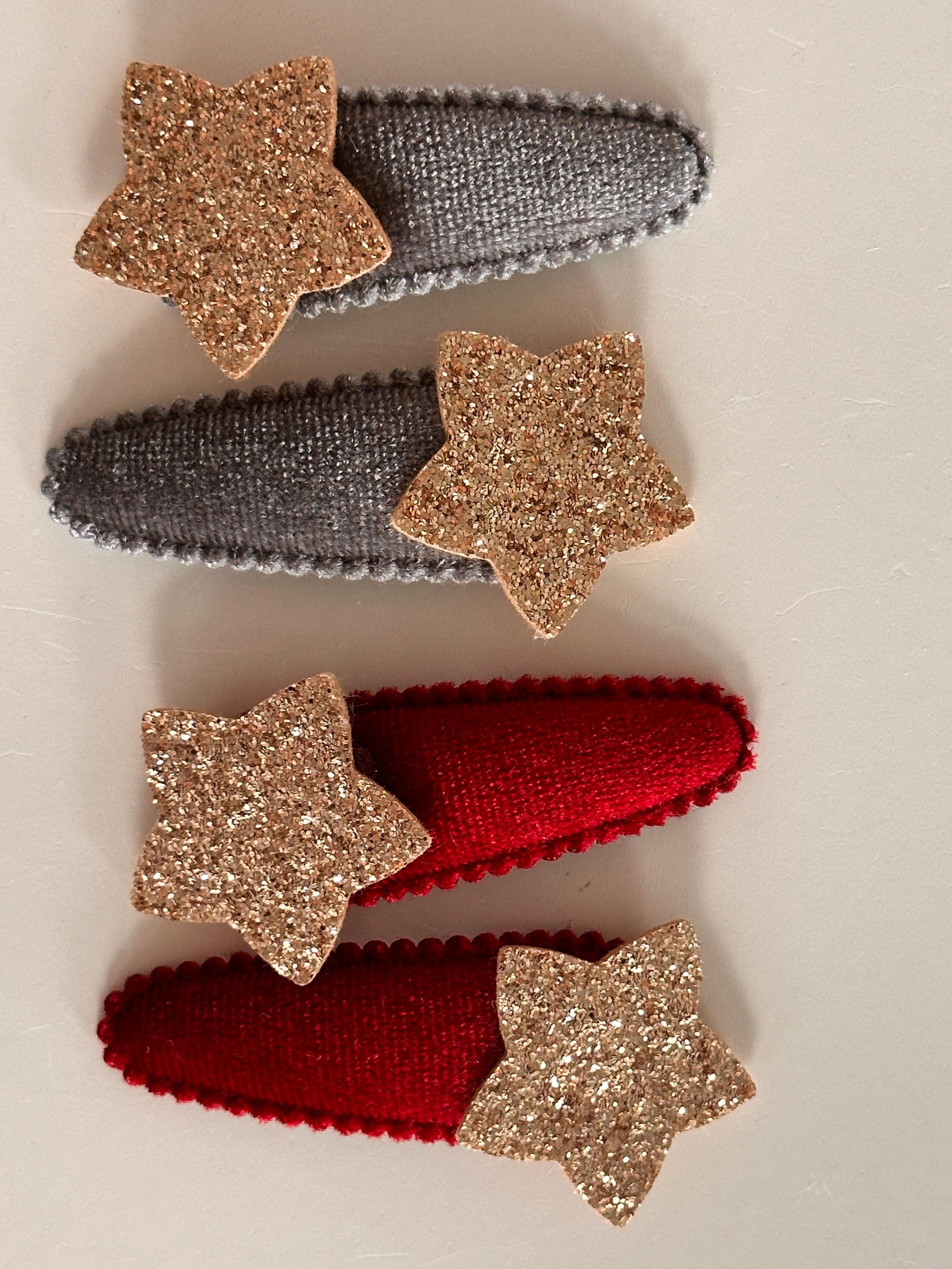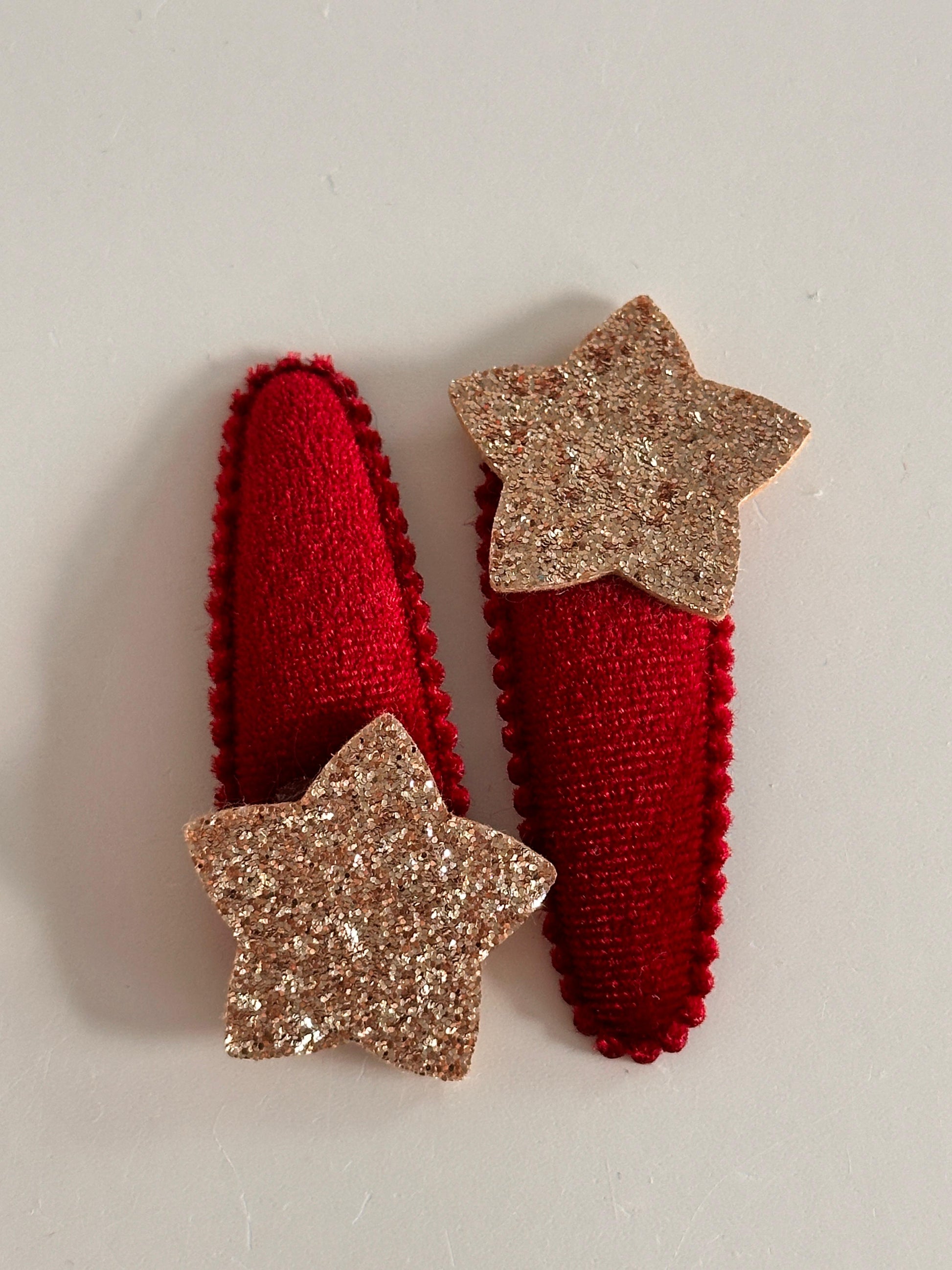 Diese festlichen Haarspangen sind das perfekte Accessoire für besondere Anlässe. Mit ihrer Samtoberfläche und funkelnden Glitzersternen verleihen sie jedem Outfit einen eleganten, festlichen Touch. Die sanfte Samtstruktur ist angenehm zu tragen und hält die Spange sicher im Haar, ohne zu rutschen. Ein charmantes Detail für Geburtstage, Feiertage oder andere besondere Momente!