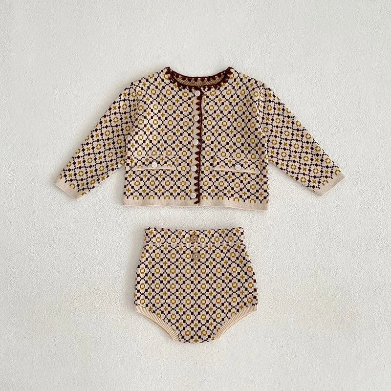 Unser Herbst Strick-Set ist genau das Richtige für dich! Dieses liebevoll gestrickte Ensemble aus Cardigan-Jacke und Bloomer (Pump-Shorts) ist perfekt für die kühleren Tage und sorgt für einen zuckersüßen Look.