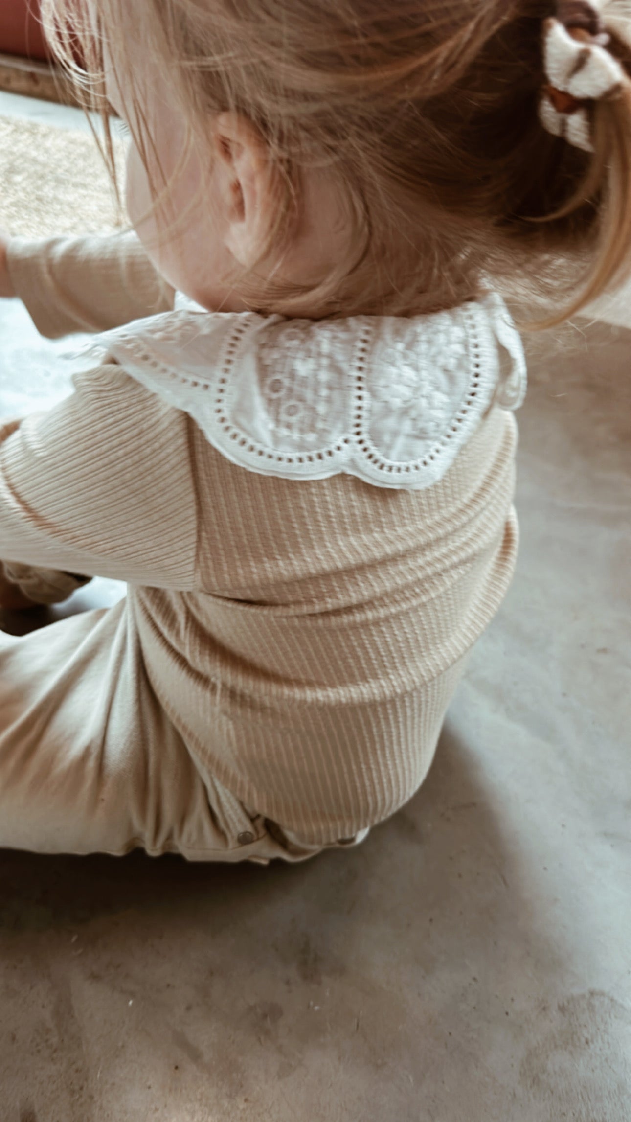 Eleganz für die Kleinsten. Diese zauberhafte Bluse mit Spitzenkragen ist das Highlight jeder Herbstgarderobe. Hergestellt aus weichem Material, perfekt für Babys und Kleinkinder von 0-2 Jahren. Der langärmelige Pullover eignet sich für festliche Anlässe oder den Alltag. Ein elegantes Kleidungsstück, das in keinem Kleiderschrank fehlen darf.